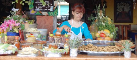 Michoacán’s fertile and varied lands bring an abundance of fruits and vegetables to its table. From the northern parts of the state com such staples as onions, chile and tomatoes as well as potatoes, strawberries, blackberries, and apricots. From the southern Sierra come more fruits: watermelon and oranges, melon and papaya. The coast yields coconuts and mango in abundance. Mix this fresh local produce with corn and beans, and the possibilities multiply almost exponentially. Some recipes are typical of a specific area but you should be able to find many of these dishes in restaurants throughout the state. Below is a cheat sheet of some of the region’s best-loved dishes. Aguácata: A large bread roll shaped like an avocado Aporreadillo: A slightly spicy beef stew typical of the lowlands, sort of like machaca but with broth. Atapakua: A thick savory sauce served over beef or cheese Ate: Blocks of candied fruit served with a tart white cheese to cut the sweet. Atole blanco: A warming drink made of finely ground cornmeal flavored with anise and chile Atole de pinole: Atole made with raw brown sugar in addition to the cornmeal Carnitas: Michoacan’s succulent carnitas are highly praised throughout the country. These are tender bites of steamed and fried pork served with a stack of tortillas and freshly made salsa, or as a filling for tacos. Chaqueta: Atole flavored with toasted and ground cacao husk. Charales: Small fish, similar to minnows, dried and served as snacks. Corundas: Triangle-shaped tamales with a sliver of pork inside, wrapped in green corn husks and steamed. A favorite food of Purépecha kings, and today a popular morning snack. Churipo: Beef and red chile broth with vegetables Gaspacho: Sold primarily in Morelía, it’s a fruit salad with cucumbers and spiced up as the customer likes it with lime, chile, salt, or even cheese. Gorditas: Cornmeal cakes stuffed with black beans and deep-fried; topped with shredded cabbage, onions and salsa. Olla podrida: The name means “rotten pot.” This is a stew of European origin made of mixed meats and vegetables, with a New World touch: pulque, a rather viscous alcoholic beverage. Paletas y Nieves: Michoacán is famous for its creamy ice cream; Paleterías “La Michoacana” are found all over Mexico! Nieve de pasta is typical of Patzcuaro, it has a mild flavor similar to vanilla or dulce de leche. Pescado Blanco: Where have all the whitefish gone? According to rumor, a bonehead biologist put carp in Lake Patzcuaro and they ate up all of the whitefish eggs. You can still get the tiny white fish, served battered and deep-fried, but they now come from Lake Zirahuén. Pozole: Pork and hominy soup (red and white versions) Queso Cotija: This crumbly white cheese prized throughout Mexico is made right here in Cotija, Michoacán. Ponteduros: Toasted corn snacks coated with brown sugar Sopa Tarasca: A tomato-based soup with chicken garnished with fried tortilla strips and a little cheese. The recipe was concocted in Patzcuaro. Uchepo: A tamale made with early corn, it can be sweet or savory.