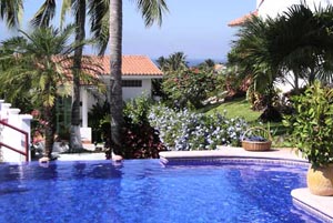 Lush hilltop oasis in gated compound with 360 degree ocean and mountain views.
